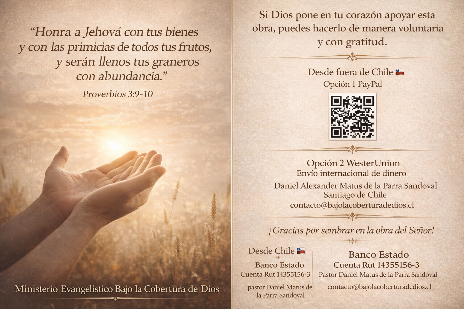 El Ministerio Bajo la Cobertura de Dios cada día con la ayuda de Dios, lleva una palabra de vida y nos permite enfocarnos en ayudar a nuestro prójimo.